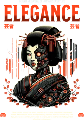 Half Human Half Robot Geisha DTF Transfer | Cyberpunk Style