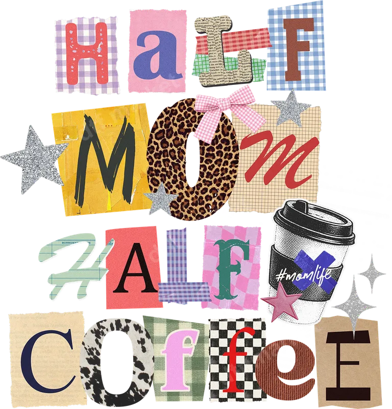Half Mom Half Coffee DTF Transfer | Trendy Collage Momlife Design
