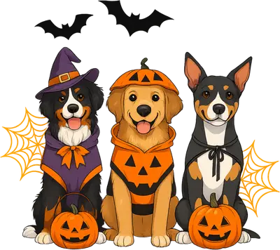 Halloween Dogs DTF Transfer: Witch, Pumpkin & Bat Costumed Pups