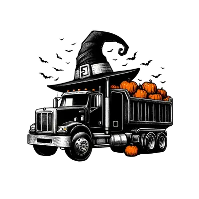 Halloween Dump Truck Witch Hat & Pumpkins DTF Transfer