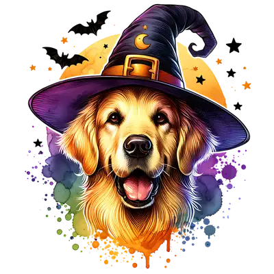 Halloween Golden Retriever Witch Hat DTF Transfer | Spooky Dog Design