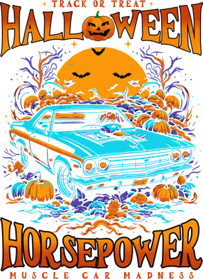 Halloween Muscle Car Madness DTF Transfer | Track or Treat Horsepower
