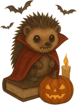 Halloween Vampire Hedgehog DTF Transfer with Pumpkin & Bats