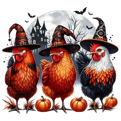 Halloween Witch Chickens DTF Transfer - Spooky Farm Rooster Heat Press Design