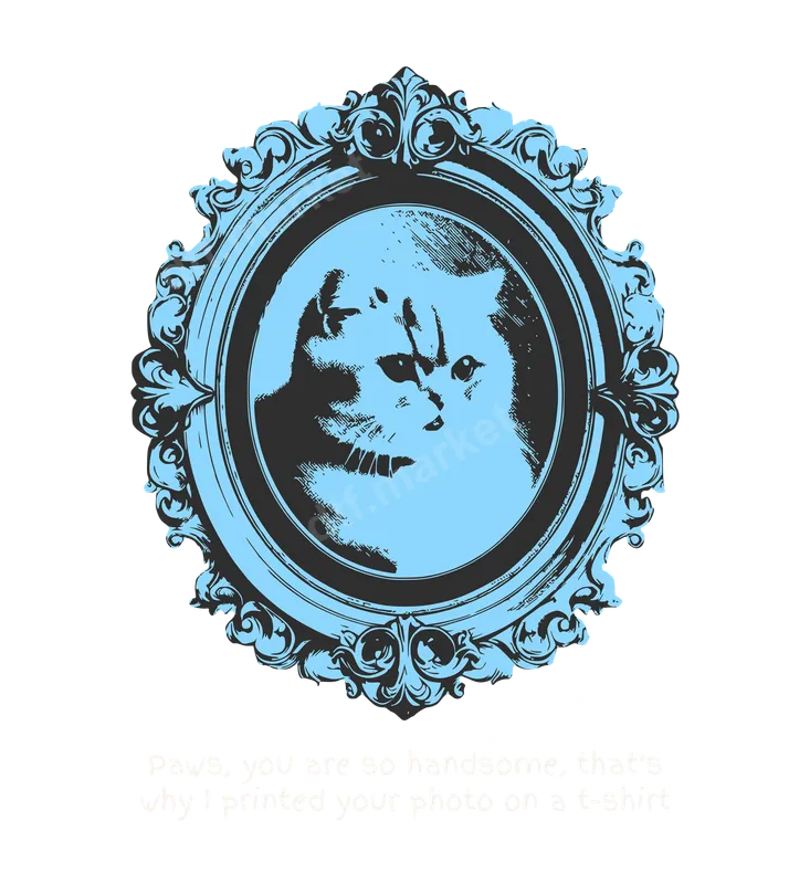 See allShowcase your love for your regal feline with this charming Handsome Cat Portrait DTF Transfer. Featuring a distinguished cat's profile rendered in a stylish black and cool blue, framed by an ornate vintage-inspired border, this design captures attention. Below the elegant artwork, a playful quote reads: "Paws, you are so handsome, that's why I printed your photo on a t-shirt." This high-quality DTF transfer arrives ready to press, making garment customization effortless and fun. This humorous and elegant design is perfect for cat lovers, pet parents, and anyone who appreciates a touch of vintage charm with their feline affection. It makes an ideal gift for Mother's Day, Father's Day, birthdays, or just because, celebrating the bond with a beloved pet. Whether you're a proud cat mom or a devoted cat dad, this unique heat press design will express your admiration in style on your favorite apparel. Our DTF transfers are incredibly versatile, adhering beautifully to a wide range of materials including 100% cotton, polyester, and various blends. Application is simple with a heat press (recommended at 300-325°F for 15 seconds with medium pressure) or even a household iron for smaller projects. Enjoy the convenience of a no-weeding iron on transfer, allowing you to create professional-looking custom garments without the fuss. Experience superior results with our premium direct to film transfers. Each transfer boasts vibrant, long-lasting colors that resist cracking and peeling, ensuring your custom t-shirt transfer looks great wash after wash. The soft-touch finish integrates seamlessly with the fabric, providing a comfortable feel. Our professional DTF film is engineered for strong adhesion and durability, delivering a high-quality finish every time.
