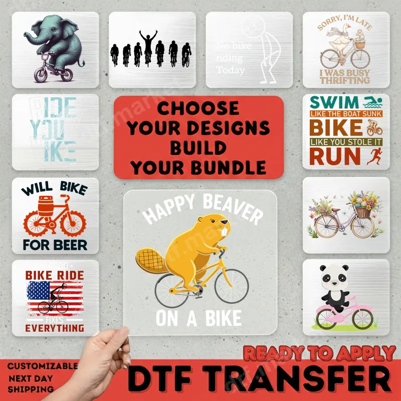See allAdd a touch of whimsical charm to your wardrobe with our 'Happy Beaver on a Bike' DTF transfer! This delightful design features a cheerful beaver pedaling a bright yellow bicycle, complete with the playful phrase 'HAPPY BEAVER ON A BIKE'. It's a vibrant, ready to press image that brings smiles and a lighthearted vibe. Perfect for anyone who loves unique animal graphics and a bit of humor, this direct to film transfer is sure to be a conversation starter on any garment. This charming graphic is ideal for cycling enthusiasts, animal lovers, and anyone with a good sense of humor. It makes a fantastic gift for birthdays, Fathers Day, or just because! Imagine it on a casual t-shirt for weekend rides, a cozy sweatshirt for outdoor adventures, or even a tote bag for everyday use. It's also great for creating custom apparel for cycling clubs, nature groups, or simply for personalizing your own unique style. Applying your new iron on transfer is incredibly simple. Our premium DTF transfers work seamlessly on a wide range of materials, including cotton, polyester, and various fabric blends. For best results, use a heat press at 300-325°F for 15 seconds with medium, even pressure. This heat press ready design requires no weeding, ensuring a quick and professional finish. You'll love how effortlessly this shirt design transforms your apparel. Experience superior quality with our professional-grade DTF transfers. Each heat transfer boasts vibrant colors that pop, exceptional durability, and a soft-to-touch finish that won't crack or peel. Crafted using robust DTF film and strong adhesive, these apparel transfers are designed to withstand countless washes while maintaining their stunning look. Get ready to enjoy a long-lasting, high-quality addition to your custom transfer collection.