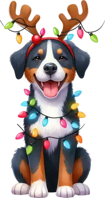 Happy Bernese Mountain Dog Christmas Lights Reindeer Antlers DTF Transfer
