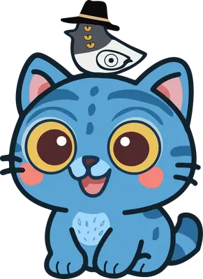 Happy Blue Cat with Fedora Bird DTF Transfer | Ready to Press Design