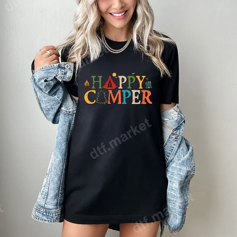 Happy Camper DTF Transfer | Outdoors & Camping T-Shirt Design