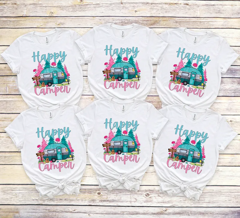 See allGet ready for your next adventure with this adorable "Happy Camper" DTF transfer. Featuring a charming retro teal travel trailer nestled among whimsical pink trees and flowers, complete with a tiny campfire, guitar, and lantern, this design captures the joyful spirit of the outdoors. It’s a perfect ready to press transfer to personalize your gear. This vibrant design is ideal for camping enthusiasts, RV owners, and anyone who loves the great outdoors. Whether you're planning a family camping trip, a summer road trip, or simply want to show off your love for nature, this heat press transfer makes a fantastic personalized item or a thoughtful gift for fellow adventurers. Our premium DTF transfers are incredibly versatile and easy to apply. They work beautifully on a wide range of fabrics, including 100% cotton, polyester, and various blends. Application is a breeze with a heat press set to 300-325°F for 15 seconds at medium pressure, or even with a household iron. Best of all, there's no tedious weeding required! Experience exceptional quality with every iron on transfer. Our designs boast vibrant colors that pop, are crack-resistant, and offer a soft, smooth feel on your chosen garment. Crafted using professional DTF film and strong adhesive, this t-shirt transfer ensures a durable and long-lasting finish that will withstand countless washes and adventures.
