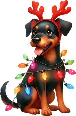 Happy Christmas Dog DTF Transfer | Reindeer Antlers & Lights