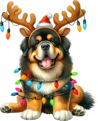 Happy Christmas Dog DTF Transfer with Reindeer Antlers & Lights