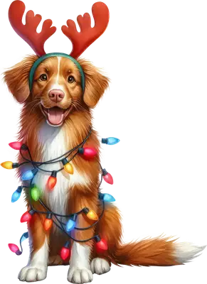Happy Dog with Reindeer Antlers & Christmas Lights DTF Transfer