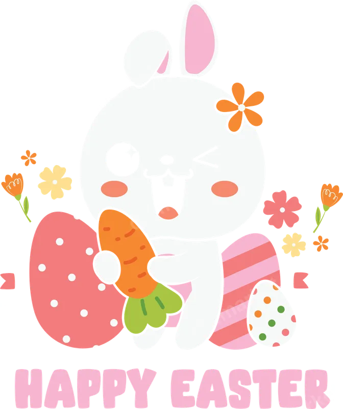 Happy Easter Kawaii Bunny DTF Transfer - Cute Winking Rabbit Design