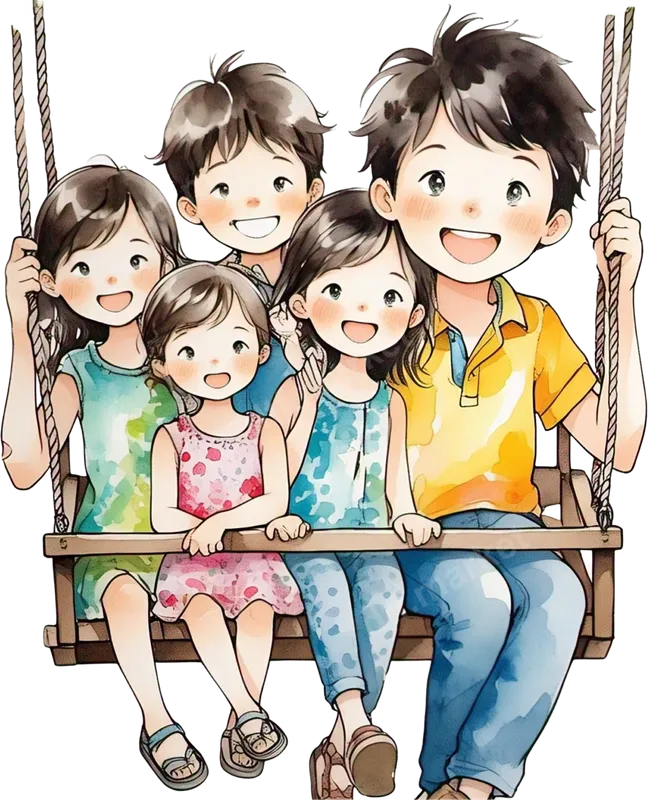 Happy Family on Swing DTF Transfer - Watercolor Anime Style