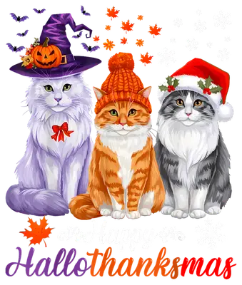 Happy Hallothanksmas Cats DTF Transfer | Holiday Season Merge Design
