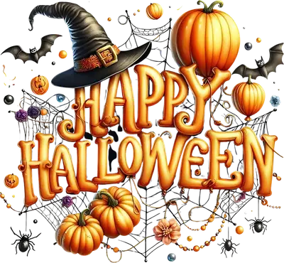 Happy Halloween DTF Transfer | Pumpkins Witch Hat Spiders