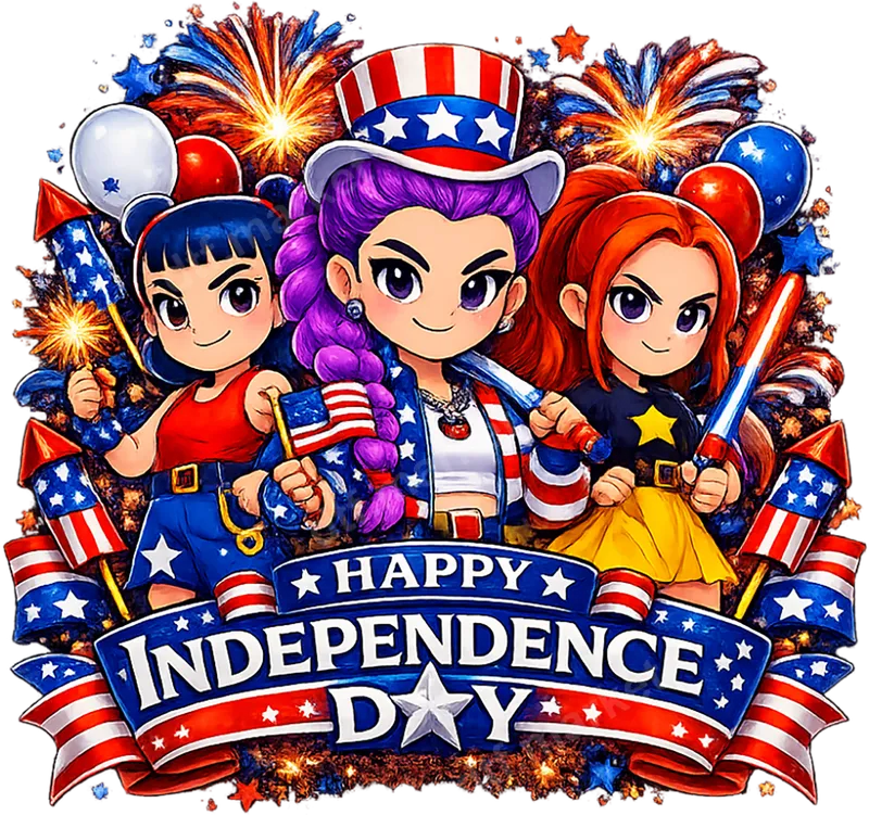 Happy Independence Day Anime Girls DTF Transfer | Patriotic 4th of July Design