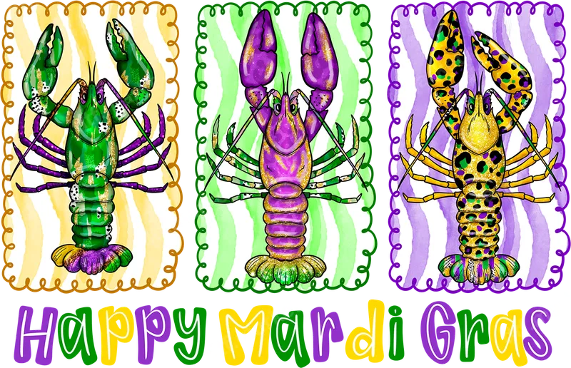 Happy Mardi Gras Crawfish DTF Transfer | Festive New Orleans Apparel