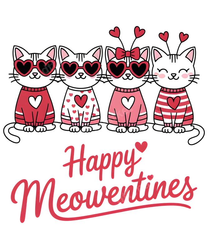 Happy Meowentines Cats DTF Transfer | Cute Valentine's Day Design