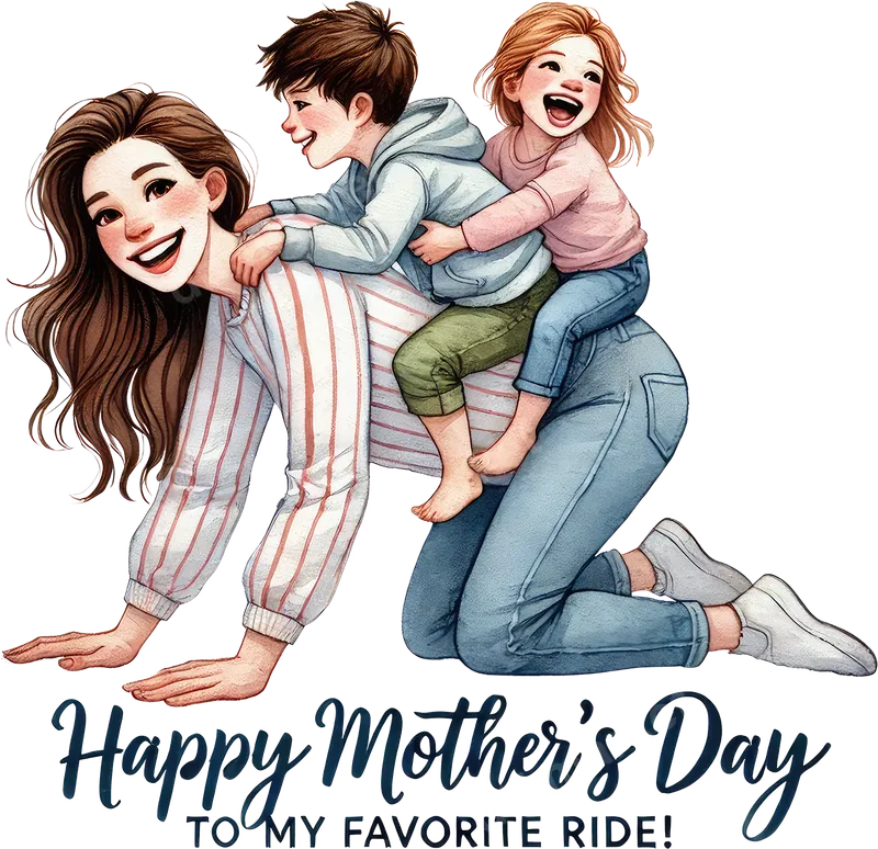Happy Mother's Day Piggyback Ride DTF Transfer - Mom's Favorite Ride Design