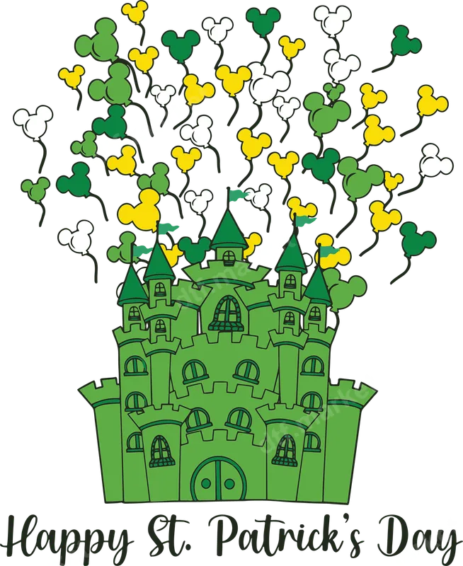 See allCelebrate St. Patrick's Day with a touch of magic using this whimsical DTF transfer. It features a vibrant green castle, adorned with festive flags, creating a fantastical focal point. Above, a delightful cascade of green, yellow, and white balloons, playfully shaped like iconic mouse ears, float into the sky. This eye-catching design is a perfect ready to press transfer for adding cheer to your holiday apparel. This unique design is ideal for families, Disney fans, and anyone looking to add a spirited, festive touch to their St. Patrick's Day celebrations. Perfect for holiday parties, parades, school events, or as a thoughtful gift. Create matching themed outfits for groups, or simply make a statement with a fun and memorable heat transfer that blends Irish charm with beloved pop culture. Our premium iron on transfer is designed for effortless application across a wide range of fabrics, including cotton, polyester, and their blends. Simply use a standard heat press at 300-325°F for 15 seconds with medium pressure, or follow instructions for a household iron. Say goodbye to tedious weeding; this heat press design ensures a smooth, professional finish every time, making custom apparel creation simple and enjoyable. Experience superior quality with our durable and vibrant apparel transfer. Each design is printed on professional-grade DTF film, ensuring vivid colors that resist cracking and fading, even after multiple washes. The soft-touch finish and strong adhesive guarantee a long-lasting, comfortable result, allowing your festive creation to stand out with exceptional clarity and detail. This isn't just a shirt design; it's a statement piece built to last.