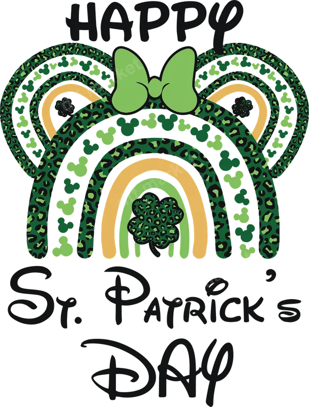 See allCelebrate St. Patrick's Day with a unique twist using this vibrant DTF transfer featuring a 'Happy St. Patrick's Day' message. The design showcases a charming green bow atop two Mickey-inspired ears, adorned with playful green leopard print and classic Mickey head silhouettes, alongside cheerful gold and green rainbow arcs. A central leopard print shamrock completes this fun and festive design, making it a perfect ready to press graphic for your holiday apparel. This eye-catching design is ideal for anyone looking to add a touch of magic to their St. Patrick's Day celebrations, from Disney enthusiasts to crafters and small business owners. It’s perfect for parades, parties, family gatherings, or as a thoughtful gift for friends and loved ones. Create custom t-shirts, sweatshirts, tote bags, or even matching family outfits that stand out in any crowd. Applying this heat press transfer is incredibly simple. Our premium direct to film transfers adhere beautifully to a wide range of fabrics including cotton, polyester, and blends. For best results, use a heat press at 300-325°F for 15 seconds with medium pressure, then cold peel. You can even use a high-quality household iron for a quick and easy iron on transfer at home. No weeding, no layering, just a professional finish every time. Experience exceptional quality with our professional DTF film, designed for vibrant colors and long-lasting durability. This apparel transfer is soft to the touch, crack-resistant, and boasts strong adhesive properties, ensuring your custom creation withstands washes and wear. Elevate your wardrobe or product line with this cheerful and trendy heat press ready design.