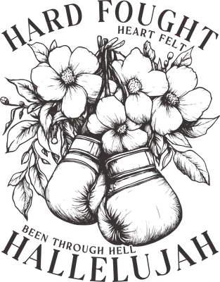 Hard Fought Hallelujah Boxing Gloves Flowers Resilience DTF Transfer