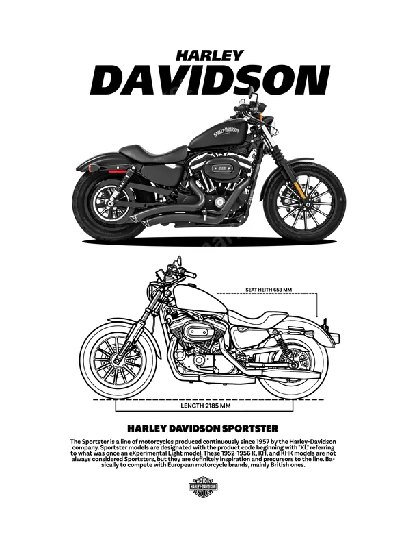 See allThis striking DTF transfer features a meticulously detailed illustration of a classic Harley Davidson Sportster motorcycle, complete with iconic branding and a technical line drawing. Capturing the spirit of the open road, this design also includes historical context, making it a unique piece for any enthusiast. This premium, ready to press transfer brings the legendary American motorcycle aesthetic to your apparel. This Harley Davidson Sportster heat transfer is perfect for motorcycle riders, enthusiasts, and fans of classic American bikes. Ideal for personalizing gear for bike rallies, club events, road trips, or as a thoughtful gift for birthdays, Father's Day, or any special occasion for the biker in your life. Show your love for the iconic brand and the freedom of the ride with this exceptional apparel transfer. Applying this high-quality iron on decal is simple and efficient. It adheres beautifully to cotton, polyester, and blends, ensuring versatility. For best results, use a heat press at 300-325°F for 15 seconds with medium pressure, then cold peel. A household iron can also be used. Enjoy a professional finish without the hassle of weeding. Our direct to film transfers are engineered for durability and a vibrant finish. Colors are rich, bold, and resist cracking or fading even after many washes. Each t-shirt transfer uses professional-grade DTF film, ensuring a soft feel that integrates seamlessly with your garment. Experience superior quality that stands up to wear, making your custom shirt design last.