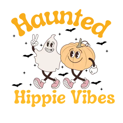 Haunted Hippie Vibes Retro Ghost Pumpkin DTF Transfer