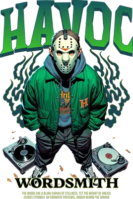 Unleash a unique blend of urban edge and horror mystique with this striking Havoc Wordsmith DTF transfer. Featuring a stylized figure in a classic hockey mask, reminiscent of a notorious slasher icon, sporting a vibrant green bomber jacket and hoodie, this design exudes raw street credibility. Flanked by vintage-style turntables and crowned with bold 'HAVOC' typography, while grounded by 'WORDSMITH,' it captures the essence of a disruptive artist. This direct to film transfer is ready to press, bringing a bold statement to any garment or accessory. This dynamic design is perfect for horror movie enthusiasts, streetwear aficionados, DJs, and hip-hop culture followers looking to express their unique style. It makes an unforgettable statement for Halloween events, music festivals, themed parties, or simply as an everyday fashion piece. Small apparel businesses and crafters will find this iron on transfer an excellent addition to their inventory, allowing them to create custom merchandise. Gift it to a friend who loves horror films, a budding DJ, or anyone with a taste for edgy urban fashion. This heat transfer design is a versatile choice for personalizing apparel. Applying this heat press transfer is straightforward, making it ideal for both professional and home use. It adheres beautifully to a wide range of materials including cotton, polyester, cotton-poly blends, and even nylon. For best results, apply with a heat press at 300-325°F for 15 seconds with medium pressure, or use a household iron with care. There's no tedious weeding required—simply peel the backing and press. Transform blank canvases into custom t-shirts, hoodies, sweatshirts, tote bags, pillow covers, baby onesies, aprons, and denim jackets. For lasting durability, wash garments inside out and tumble dry low. Experience superior quality with this ready to press transfer, showcasing vibrant, full-color printing and exceptional fine detail. The result is a crack-resistant image that's soft to the touch, avoiding the heavy, stiff feel often associated with vinyl. Each direct to film transfer is meticulously printed on premium DTF film, featuring a strong adhesive backing to ensure professional-grade application and outstanding longevity for every project you undertake. Get ready to impress with prints that truly stand out.