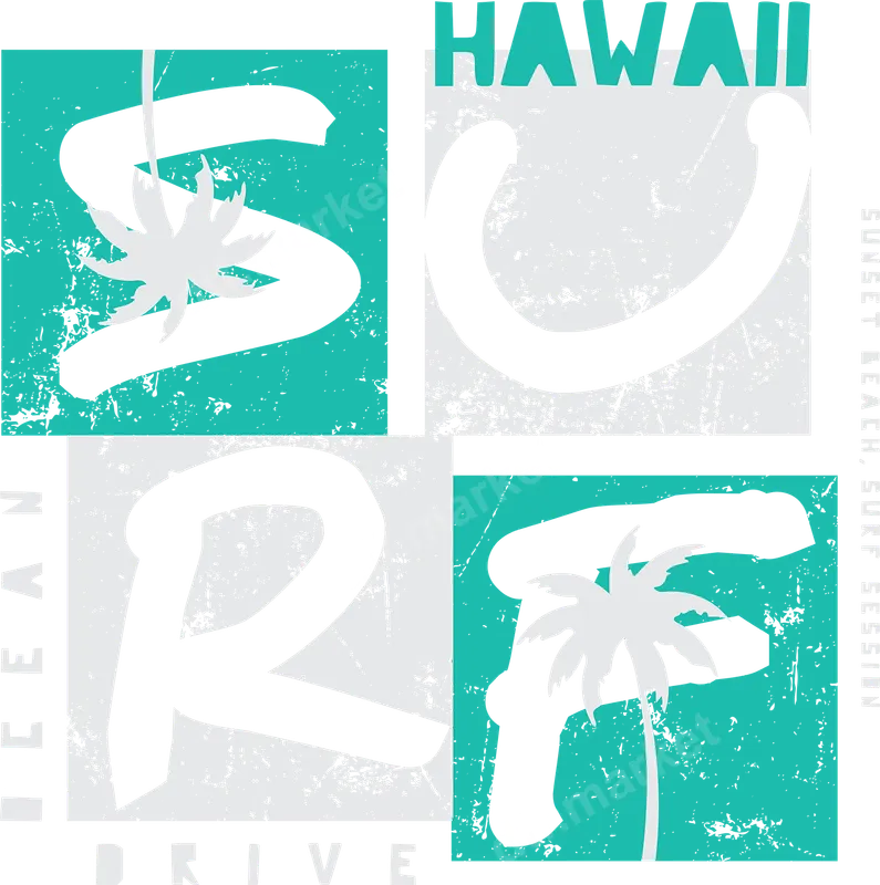 See allThis vibrant Hawaii Surf DTF transfer captures the essence of endless summer with its distressed, retro aesthetic. Featuring large, stylized "SURF" lettering accented with iconic palm trees, alongside "HAWAII," "OCEAN," "DRIVE," and "SUNSET BEACH, SURF SESSION" text, this ready to press design brings a laid-back, vintage beach vibe to any garment. The teal and white color palette with a textured finish makes it an eye-catching statement. Ideal for surfers, beach enthusiasts, vacationers, and anyone who loves the Hawaiian islands or coastal living. This heat transfer is perfect for summer gatherings, beach trips, surf competitions, or adding a cool, relaxed flair to your everyday wardrobe. It makes an excellent gift for friends and family who dream of ocean waves and sunny days. Applying this iron on transfer is quick and easy, suitable for a wide range of fabrics including cotton, polyester, and blends. For best results, use a heat press at 300-325°F for 15 seconds with medium pressure, then peel cold. A household iron can also be used. Unlike traditional vinyl, there's no weeding required, saving you time and effort. Our direct to film transfers are crafted using premium materials, ensuring vibrant colors and exceptional durability. The advanced DTF film provides a soft, flexible feel that won't crack or peel, even after multiple washes. With strong adhesive properties, this professional-grade apparel transfer will seamlessly bond to your chosen item for a long-lasting, high-quality product.