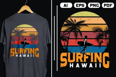 Hawaii Surfing Retro Sunset Ready to Press DTF Transfer