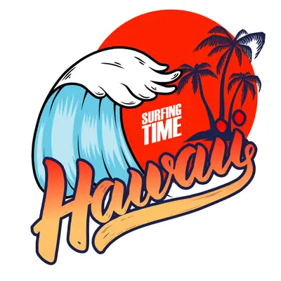 Hawaii Surfing Time Wave & Palm Trees DTF Transfer