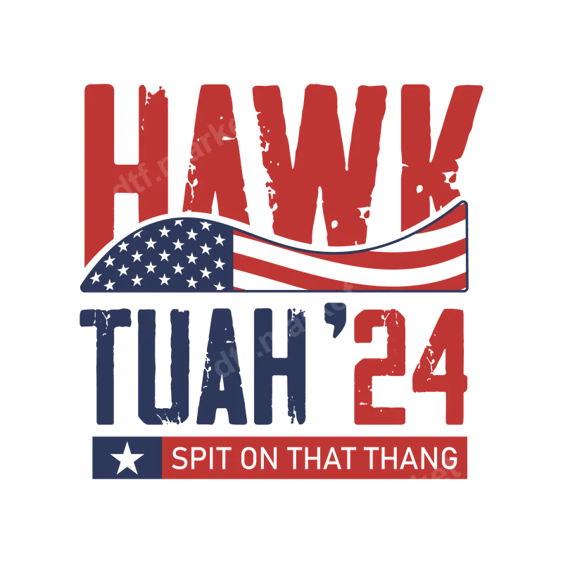See allThis vibrant DTF transfer captures the essence of the viral "Hawk Tuah" meme, featuring the bold, distressed text "HAWK TUAH '24" in striking red and blue, accented with a waving American flag graphic. Below, the unforgettable phrase "SPIT ON THAT THANG" completes the design, making it an instant conversation starter. This ready to press transfer is perfect for anyone looking to add a touch of internet humor and trending pop culture to their wardrobe. This unique design is ideal for Gen Z meme enthusiasts, social media users, and anyone who loves to showcase their awareness of viral internet trends. It makes a fantastic ready to press gift for friends, family, or even yourself, perfect for casual outings, parties, or just making a statement. Express your personality and humor with this iconic phrase that has taken the internet by storm. Applying this Hawk Tuah heat press ready transfer is simple and efficient. It works flawlessly on a wide variety of fabrics, including cotton, polyester, and their blends. For best results, use a heat press at 280-300°F (138-149°C) for 6-10 seconds with medium pressure, then perform an instant hot peel. This iron on transfer requires absolutely no weeding, saving you time and effort for quick customization. Crafted with professional-grade DTF film, this heat transfer offers exceptional durability and a premium feel. The colors are incredibly vibrant and designed to resist cracking and fading, ensuring your garment looks great wash after wash. The strong adhesive guarantees a long-lasting bond, providing a soft-to-the-touch finish that moves with the fabric. Create custom apparel that stands out with this high-quality transfer.