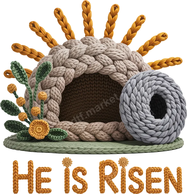 He Is Risen Knitted Tomb Easter DTF Transfer Design