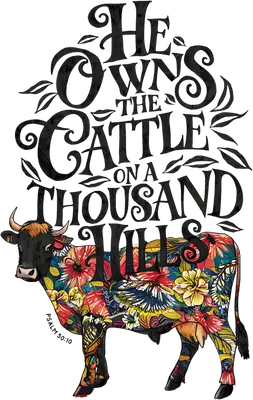 He Owns The Cattle On A Thousand Hills DTF Transfer | Floral Scripture Cow Design