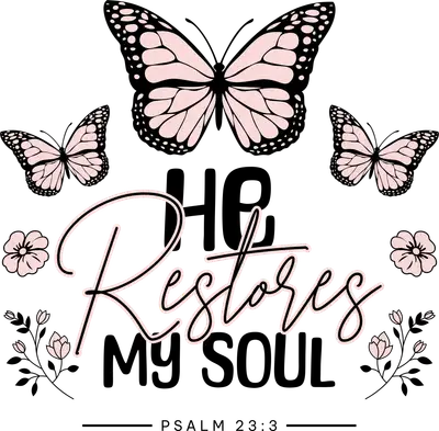 He Restores My Soul Psalm 23:3 DTF Transfer | Butterfly Scripture Ready to Press