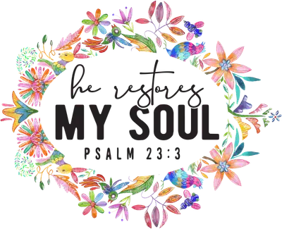 He Restores My Soul Psalm 23:3 DTF Transfer - Vibrant Floral Wreath Faith Design