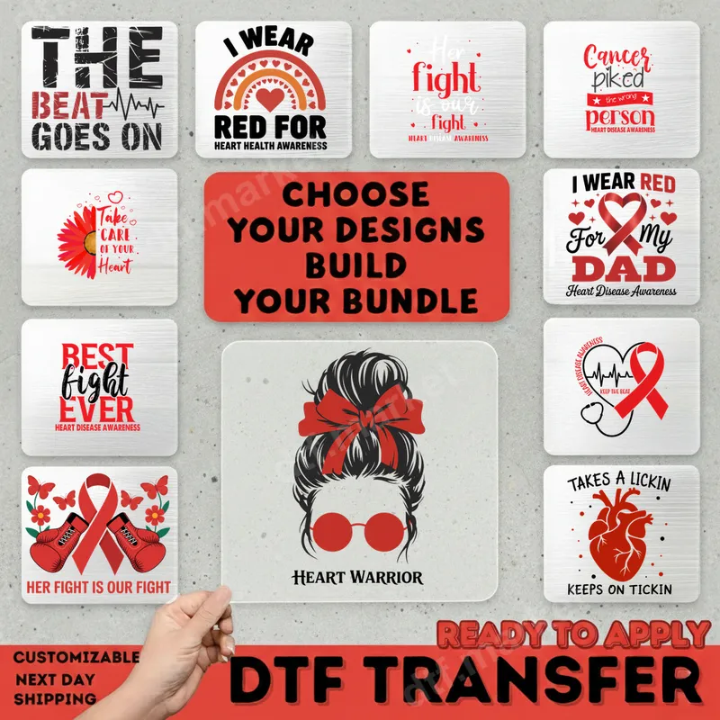 See allEmpower your wardrobe with this striking "Heart Warrior" messy bun DTF transfer, celebrating strength and resilience in the face of heart disease. This unique design features a stylish messy bun adorned with a vibrant red bow and chic red glasses, perfectly complementing the "HEART WARRIOR" text beneath. It’s a powerful statement piece, a ready to press transfer that combines fashion with a heartfelt message, making it easy to create impactful apparel. This inspiring heat press design is ideal for heart disease survivors, advocates, family members, and anyone dedicated to raising awareness. It makes a thoughtful gift for Heart Health Awareness Month in February, participation in charity walks, or simply as an everyday expression of support. Show the world your fight, your journey, or your solidarity with those battling heart conditions with this meaningful graphic. Applying this versatile apparel transfer is effortless. Our premium DTF transfers work beautifully on a wide range of fabrics, including 100% cotton, polyester, and cotton/poly blends, regardless of color. For best results, use a heat press at 300-325°F for 15 seconds with medium, even pressure. This iron on transfer requires no weeding, saving you time and effort to quickly personalize your garments. Experience professional-grade quality with every "Heart Warrior" design. Our direct to film transfers boast incredibly vibrant colors, exceptional durability, and a soft, smooth feel once applied. Each t-shirt transfer is crack-resistant and designed to withstand numerous washes, ensuring your message remains bold and clear. Our specialized DTF film ensures strong adhesion and a long-lasting finish for all your custom creations.