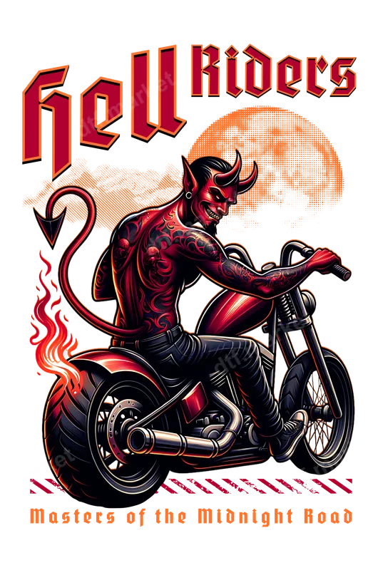 Hell Riders Devil Biker Motorcycle DTF Transfer Design