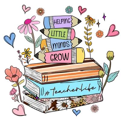 Helping Little Minds Grow Teacher Life Books DTF Transfer