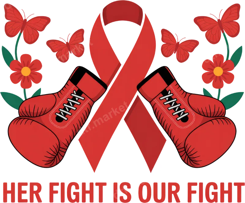 See allThis powerful "Her Fight Is Our Fight" DTF transfer features a bold red awareness ribbon flanked by strong boxing gloves, symbolizing resilience and unwavering support. Adorned with delicate red butterflies and vibrant flowers, this design blends strength with grace. It's a striking heat press ready graphic, perfect for making a statement of solidarity. This direct to film transfer is vibrant and ready for immediate application. This inspiring design is ideal for advocates, supporters, family members, and friends rallying behind someone facing a challenge. It’s perfect for awareness walks, fundraising events, solidarity gatherings, or as a thoughtful gift. Whether for Heart Disease Awareness, HIV/AIDS support, or any personal battle, this apparel transfer serves as a beacon of unity and strength. Create custom apparel for teams, groups, or individuals to wear with pride. Our premium DTF transfers are incredibly versatile and easy to apply on cotton, polyester, and various blends. For best results, use a heat press at 300-325°F for 15 seconds with medium pressure. This ready to press transfer can also be applied with a household iron, making customization accessible. Forget the tedious weeding; our designs are hassle-free and professional. Experience exceptional durability and vivid color with our professional-grade DTF film. Each custom transfer boasts vibrant hues, crack-resistant flexibility, and a soft-to-the-touch finish that feels like part of the fabric. The strong adhesive ensures your design stays put, enduring countless washes without fading or peeling. Elevate your garments with this stunning, long-lasting iron on transfer.