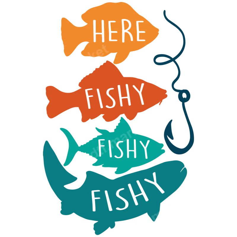 Here Fishy Fishy Funny Fishing DTF Transfer | Ready to Press Heat Transfer