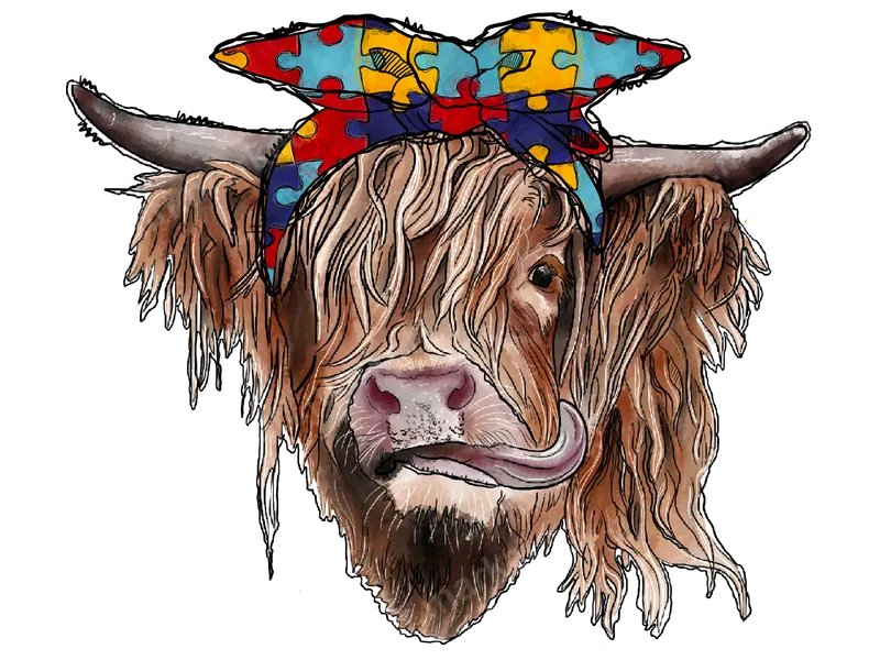 See allThis charming DTF transfer features an adorable shaggy Highland cow, captured with a playful expression, complete with its tongue playfully poking out. Adorning its head is a vibrant bandana patterned with colorful puzzle pieces, a widely recognized symbol for autism awareness. This high-quality direct to film transfer is a unique way to show support, making it a perfect ready to press transfer for any garment or accessory. Ideal for autism parents, advocates, educators, and anyone who wants to champion autism awareness. This t-shirt transfer is a wonderful choice for Autism Awareness Month in April, charity walks, school events, or as a thoughtful gift for families touched by autism. It combines a beloved animal with a powerful message, allowing wearers to spread understanding and acceptance with style. Applying this heat press transfer is simple and efficient. It adheres beautifully to a wide range of materials, including cotton, polyester, and various fabric blends. For best results, use a heat press at 300-325°F for 15 seconds with medium pressure, followed by a cold peel. Even a household iron can be used, making it accessible for everyone. Best of all, there's no tedious weeding required, so your iron on transfer is ready to go straight onto your item. Crafted with professional-grade DTF film and vibrant, eco-friendly inks, this heat press ready design promises exceptional durability and a stunning finish. The colors are rich and true to the design, resisting cracking and fading even after multiple washes. Enjoy a soft, smooth feel on your finished garment, ensuring both comfort and a long-lasting, impactful statement piece that stands out.
