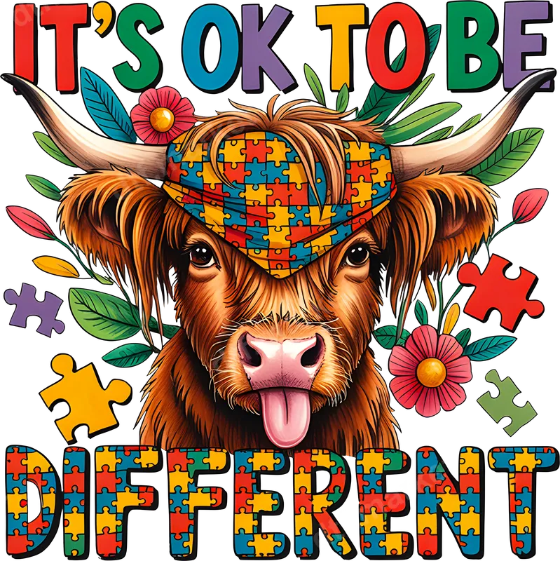 Highland Cow Autism Awareness DTF Transfer | It's OK to be Different