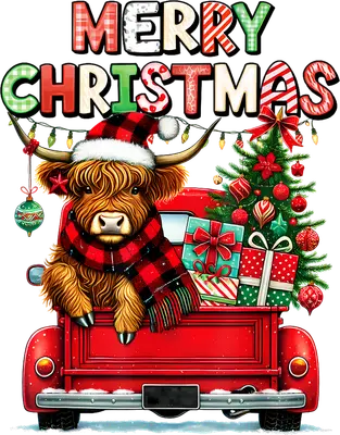 Highland Cow Christmas Truck DTF Transfer | Merry Christmas Pickup