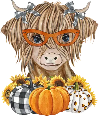 Highland Cow DTF Transfer with Glasses, Pumpkins & Sunflowers