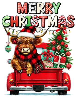 Highland Cow Red Truck Merry Christmas DTF Transfer