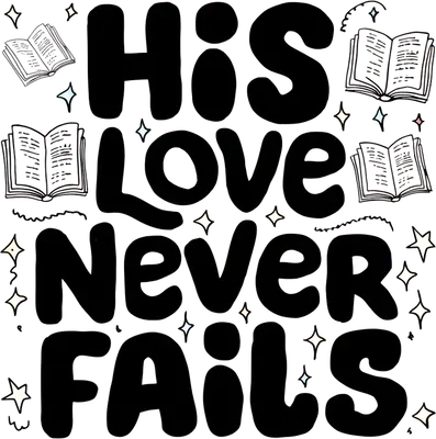 His Love Never Fails DTF Transfer | Christian Faith Apparel